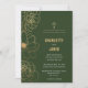 Inspirational quote elegant Christian wedding invitation features a dark green background with simple gold floral elements. The introduction, "Our lives have been blessed by our love for each other and by our faith in the Lord" can be personalised to copy of your choice. The back side has a pink and blush watercolor floral arrangement on a light green background. If you would like changes, use the Chat Button on Zazzle or email Suzanne at suzparada@gmail.com.