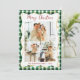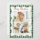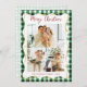 Green Gold Gingham Pattern Merry Christmas 3 Photo Holiday Card