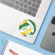This green, gold and white volleyball sticker with custom team and school mascot name features the realistic image of a volleyball that has a floral kaleidoscopic pattern blended with its green and gold panels - her name and team name are customisable, as is her jersey number - by katz_d_zynes | search ALL katzdzynes' green & gold volleyball team colours gifts >>>> https://www.zazzle.com/store/katz_d_zynes/products?cg=196234680336026903