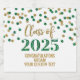 Graduation party custom champagne bottle labels class of 2025 with green and gold glitter pattern confetti.