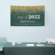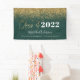 green gold glitter script class of graduation party banner design. Modern gold and glitter effect and on trend bold typography and script text. Part of a collection.