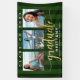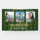 Announce to the world that your favourite grad has reached their milestone with this stunning, simple, modern, personalised 3 photo banner. Sparkly faux gold glitter handwritten script calligraphy overlays a hunter green striped background. Add 3 photos of your choice and personalise the custom text with your graduate’s name, school name and class year. Choose from indoor or outdoor options. Matching invites, thank you cards, cap toppers, fans, napkins, plates and other graduation goodies are also available in this trendy and stylish collection. Guaranteed to preserve cherished memories of their special occasion!