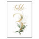 Beautiful table number card with a botanical motif -  a watercolor illustration of green and gold leaves. Table 3. Please, check all available numbers
