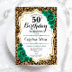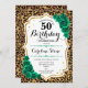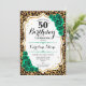 50th Birthday Party Invitation. Elegant floral emerald green design with faux glitter gold and roses. Features leopard cheetah animal print and script font. Perfect for a stylish womens bday celebration. Can be customised for any age! Printed Zazzle invitations or instant download digital printable template.