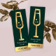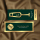 Elegant drink vouchers in emerald green and gold design, the front features a glass of bubbly in faux gold foil effect with 'Enjoy a drink on us' message underneath. The back includes space for your logo, slogan and website over a dark green background with gold outline. Make this event free drink token your own, the perfect little marketing tool for your next business or private event!