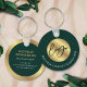 Promote your business with this custom keychain design in emerald green and gold. Featuring space for your business logo and slogan on the front with your name, job title, contact details and website on the back. The dark green background paired with the faux gold detailing makes for a stylish corporate gift - perfect for real estate and property agents, business owners, lawyers and more!