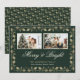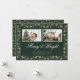 Elegant custom green and gold photo Merry Christmas card featuring gold holly on a dark green background. Easily personalise this photo Merry and Bright holiday card with your favourite photos and the family name.