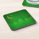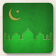 Elegant islamic illustration: golden mosque silhouette with a moon and a star on a grungy green background.