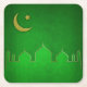 Elegant islamic illustration: golden mosque silhouette with a moon and a star on a grungy green background.