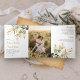 Green Gold Olive Leaves Branch Photo Wedding Tri-Fold Invitation