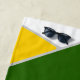 This custom colours volleyball beach towel features the image of a simple, abstractly oversized volleyball that has green, gold and white panels - personalise with the athlete's name & jersey number -- you can EASILY change the colours on this towel: press the blue "Edit Design" button above to use Zazzle's design tool to change the volleyball's green & gold panels and text colours to your team's colours or favourite colours - by katz_d_zynes