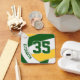 This easy-to-personalise keychain for volleyball players features the abstractly oversized image of a green, gold and white volleyball on the front, and a simple white volleyball on the back that is similarly oversized - easily personalise with player's name & jersey number on the front and team name on the back, all in a varsity letter style font - by katz_d_zynes