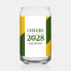 Colleges, universities, high schools, and institutes of higher learning can add sophistication to graduation merchandise with this modern, contemporary can glass design, which features elegant lettering set on forest green, gold, and white backgrounds. Customise with name of school/college/university and academic logo/motto/seal. Colours and font types can be modified as desired. Reverse shows identical design.