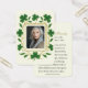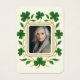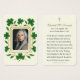 A beautifully reverent Catholic memorial design featuring golden shamrocks and Celtic-inspired embroidery on a deep emerald green background. The front holds a photo of your dearly departed framed in a graceful embroidered border, while the back offers a traditional Catholic prayer invoking the intercession of the Blessed Virgin Mary and the Saints. A sacred keepsake for honouring a life of grace and faith, perfect for sharing at the funeral or memorial Mass.