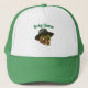 Celebrate St. Patrick's Day with a unique twist. This trucker hat features a metallic gold skull wearing a green fedora hat, with green shamrocks embedded in the eye sockets. The design blends edgy skeletal aesthetics with classic Irish luck symbols. Perfect for those who prefer an alternative, bold style over traditional holiday attire. The vibrant green mesh and white front panel provide a high-contrast background for the golden-finished skull graphic. Ideal for parades, pub crawls, or casual March 17th celebrations. This lucky charm design stands out with its intricate details and rich emerald and gold tones. A great gift for fans of gothic art, Irish heritage, or anyone looking for a distinctive holiday accessory that avoids clichés.