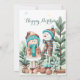 a birthday set in a magical Winter Wonderland, where childhood imagination meets seasonal charm. The design features a sweet snowman and a little girl dressed warmly in cosy hats and scarves, standing among evergreen trees, creating a scene that feels both playful and heartwarming. The watercolor style softens the image, evoking innocence and joy, while the gold and snowflake accents highlight the sparkle of winter’s magic. What makes it special is how it captures both the wonder of the season and the delight of a child’s milestone, turning a birthday into an enchanting moment filled with warmth, laughter, and love.