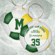 This easy-to-personalise soccer keyring features the realistic image of a soccer ball that has green, gold and white panels, upon which you can customise the athlete's name, jersey number, team & mascot name and year on the front and monogram or varsity letter on the back - by katz_d_zynes