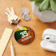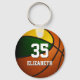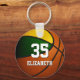 This team colours basketball themed keychain for girls or boys features the realistic image of a basketball that has two recolored panels--one green and one gold - easily personalise with player name & jersey number - by katz_d_zynes