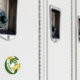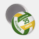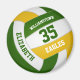 This volleyball themed magnet with custom team colours features the realistic image of a volleyball with green, gold and white panels upon which you can customise the player's name & jersey number plus school or club name and mascot name in a varsity letter style font - by katz_d_zynes