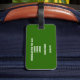 This volleyball themed luggage tag features the realistic image of an abstractly oversized volleyball that has green, gold & white panels - personalise with player name and monogram on the front, address and phone number on the back - by katz_d_zynes