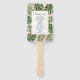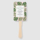 Green, gold tropical leaves pink wedding program hand fan