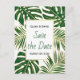 Green, gold tropical leaves wedding Save the Date Announcement Postcard