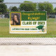 This is an outdoor grade vinyl banner with metal grommets. It can be fully personalised with the student's photo, name, message, class year, and town & school name. It includes matching cap and diploma artwork, which may also be customised.