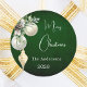 For a Christmas party favours or gift wrapping. A rustic green uneven coloured background. Decorated with white and gold baubles and some greenery and a pine cone. Personalise and add your name, year. Text: Merry Christmas