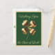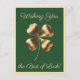 A golden four-leaf clover on dark green background adorns this Good Luck Greeting Card - perfect for all kinds of occasions.