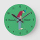 Golfer themed design green round clock with customisable text.
