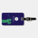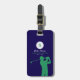 Stylised illustration of a green golf player personalised with your name and initial letter, and with custom words (Golf Club name, a slogan, or any other info)... an elegant dark blue tag to identify the baggage of a golfer.