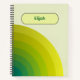 Stay organised in style with this modern spiral notebook for work. Its cover features a refreshing gradient of green tones, arranged in smooth, semi-circular layers that radiate a sense of calm and balance. The soft background paired with the bold geometric arcs gives it a clean yet creative look—perfect for both professional and personal settings. The name plate at the top adds a touch of personalisation, making it easy to identify as yours. With its sleek design and practical spiral binding, this notebook is not only functional but also an inspiring companion for meetings, brainstorming sessions, or daily planning.