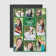 This modern green senior graduate photo magnet card features your favourite 9 student photographs. This graduation announcement features classy white typography of your high school or college name for the class of 2023. Customise these magnets with your graduating year below the black grad cap. It features 2 horizontal pictures, 5 vertical photos, and 2 square photographs.