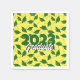 Forest green graduation caps thrown in the air make a nice design on these paper napkins for a graduation party for a graduate from high school, college, or university. Green graduation caps on a yellow background. Personalise with graduating student's year of graduation and name.