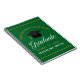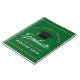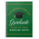 These classic green and gold custom college or high school graduation notebook party favour feature classy white typography under a grad cap for the class of 2025. Customise with your graduating year under the chic calligraphy. A perfect keepsake gift for a graduate to plan their future plans for grad school or university.