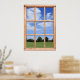 This window view poster is the companion to 'Blue Sky Over the Park' but can also be bought to display on its own. The wooden window frames a beautiful summer scene with green fresh-cut grass, trees, and a blue sky with billowing clouds. Bring a little summertime into your home with this fake window and its tranquil outlook!