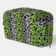 This unique digital pixelated vertical stripe design adds a modern touch to a traditional travel toiletry bag. The customisable green, grey, and black colour combination creates a striking and eye-catching pattern that's sure to make a statement. The two-tone grey and green stripes on a black background provide a sophisticated contrast, making this bag a great accessory for any traveller who wants to stand out from the crowd.