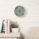 Green Grey Teal Blue Ochre Hip Bohemian Bali Art Clock
