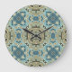 Green Grey Teal Blue Ochre Hip Bohemian Bali Art Large Clock
