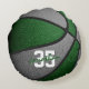 This basketball team colours pillow for him or her features the realistic image of a basketball that has alternating green and grey recolored panels - personalise with player name in an "autograph" style font overlying the athlete's jersey number - by katz_d_zynes
