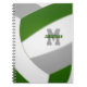 This sporty volleyball themed spiral notebook features a simple, abstractly enlarged green, grey and white volleyball - athlete's name and monogram, varsity letter, or jersey number are customisable in coordinating green and grey - by katz_d_zynes