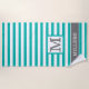 Green Grey White Striped Family Name Monogrammed Beach Towel