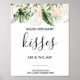 This green guess how many kisses bridal shower game poster is perfect for an elegant bridal shower. The design features hand-painted watercolor gold and tropical green foliage with elegant blush flowers.