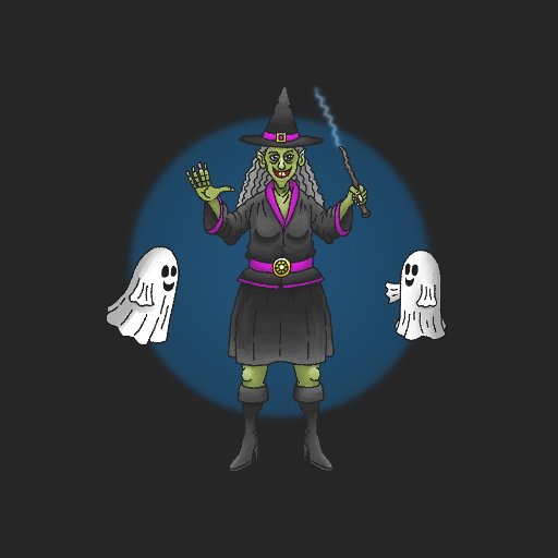 The green witch has prepared her magic wand for a Trick or Treat party on Halloween night.