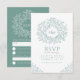 Sage grey green hand drawn growing leaf botanical art wedding RSVP. Simple leaf design circling your own monogram initials design. In pretty shades of green and grey on white. Matching invitations and other matching items and colour options available. © Original leaf drawing and design by Sarah Trett for www.mylittleedenweddings.com on zazzle.