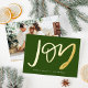 A beautifully bold gold foil "JOY" adorns this festive holiday card with a festive green background. Personalise with your favourite photo on the back.