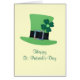 Hand-cut Green hat and clover with black ribbon and silver belt clip and yellow background for St. Patrick's day on greeting card. *Every things you see on the products are hand made, but you must know that you get a photo!