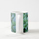 A mug for gardeners with a photo of Haworthia succulent plants in shades of green and blue.