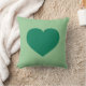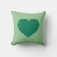 This pillow features a brigade of Kelly green hearts on one side and a large single kelly green heart on the other -- both on a light green background.
