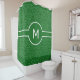 Green Hexagons with Central Monogram Geometric Shower Curtain